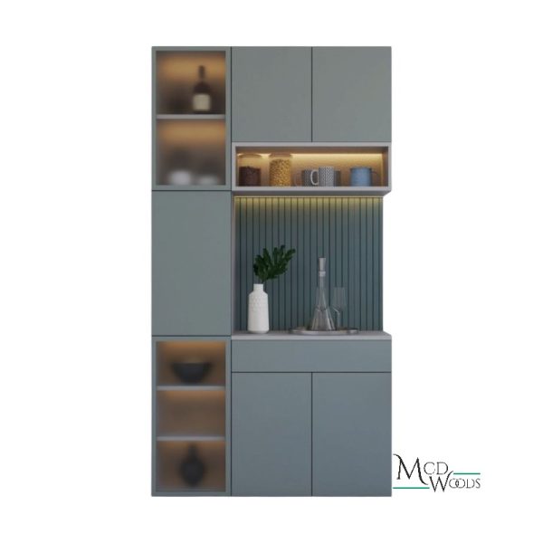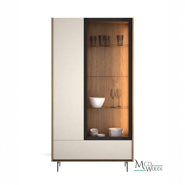 En su interior, las repisas amplias permiten organizar vajilla, copas o elementos decorativos, mientras que la iluminación LED cálida integrada realza el contenido y crea una atmósfera acogedora y sofisticada, ideal tanto para el uso diario como para ambientaciones especiales.