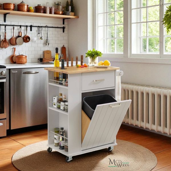 Aparador Isla de Cocina – Melamina Maderado y Blanca con Almacenamiento Integrado