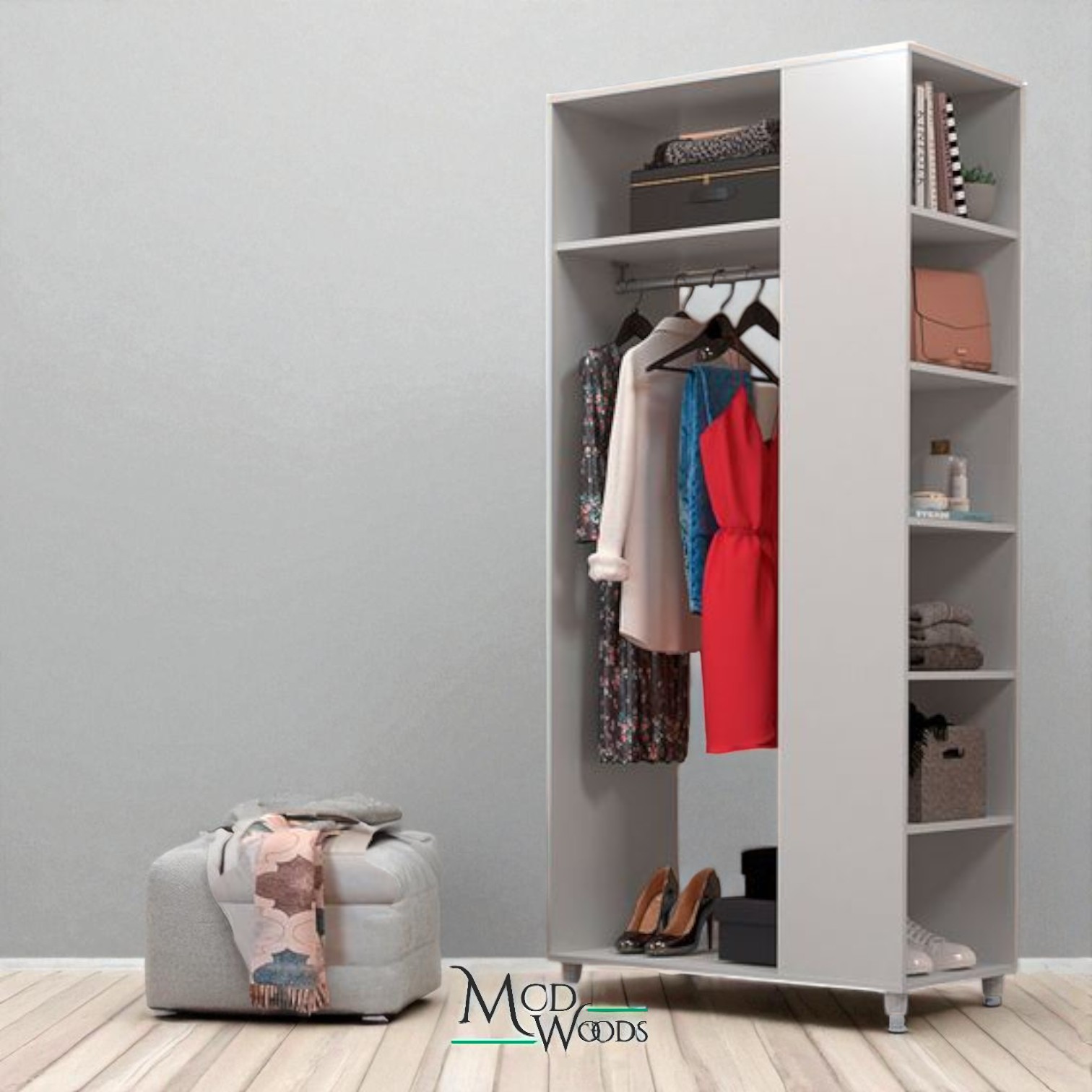 • Diseño lateral con repisas: Incluye múltiples repisas abiertas a los costados, perfectas para organizar ropa doblada, zapatos, bolsos, accesorios u objetos decorativos. Estas repisas permiten una excelente visibilidad y acceso rápido a todo lo que necesites.