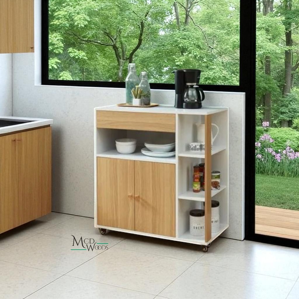 Diseñada para optimizar el espacio y la funcionalidad en la cocina, esta práctica isla móvil ofrece soluciones de almacenamiento y superficie extra de trabajo con un estilo moderno y versátil.