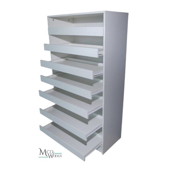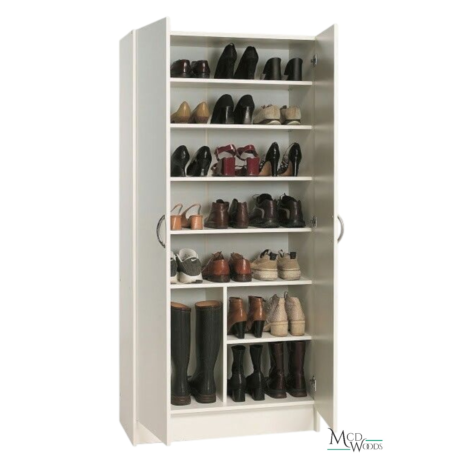 Cuenta con dos puertas batientes que ofrecen un cierre cómodo y seguro, manteniendo los zapatos libres de polvo y aportando un aspecto limpio y elegante al ambiente. Su diseño minimalista en blanco se adapta a dormitorios, clósets, vestidores o entradas, brindando un toque estético y funcional.